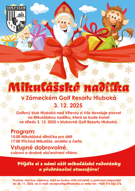 Přijďte s námi přivítat Mikuláše v Zámeckém Golf Resortu Hluboká!